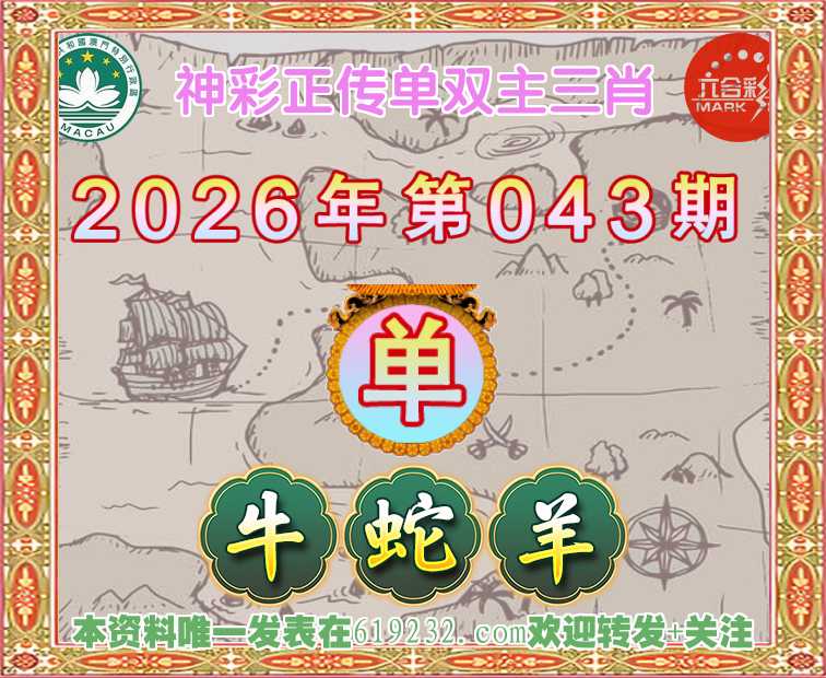 043期: 🍃『神彩正传』 🍃单双主三肖🍃【-牛羊】开:13