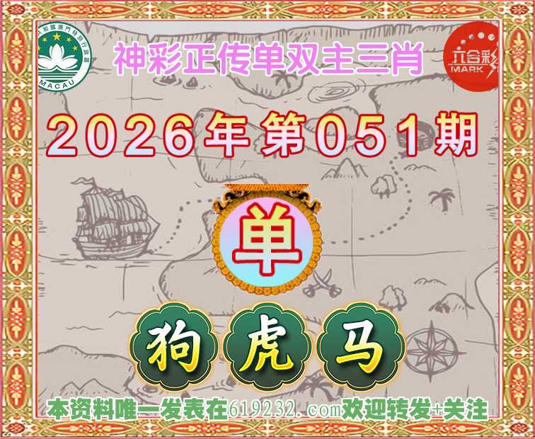 051期: 🍃『神彩正传』 🍃单双主三肖🍃【-狗虎】开:01