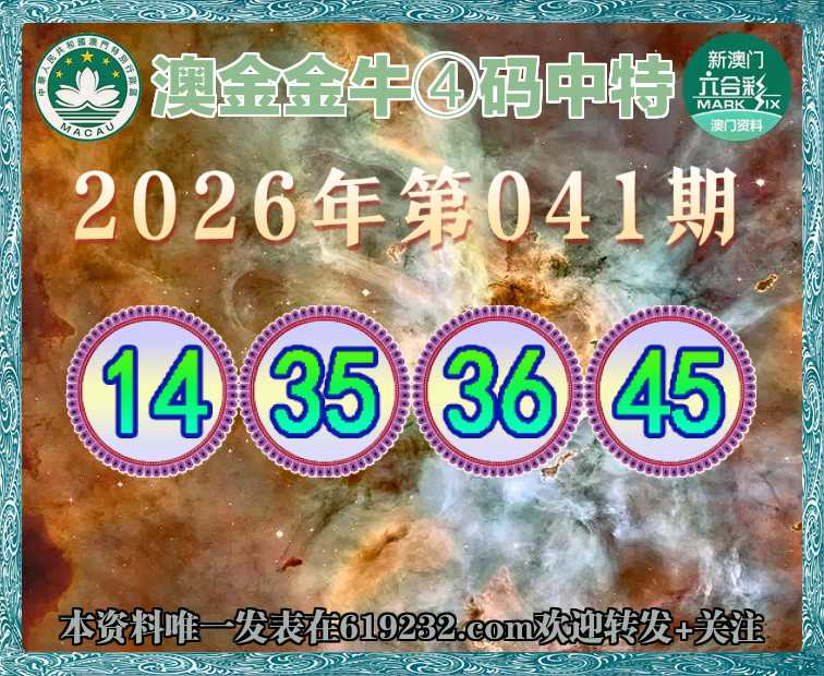041期:《澳金金牛》 🥬④码中特🥬【14.35.36.45】开:36