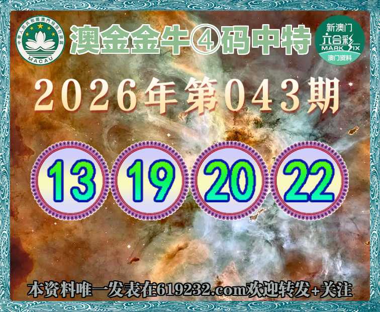 043期:《澳金金牛》 🥬④码中特🥬【13.19.20.22】开:13