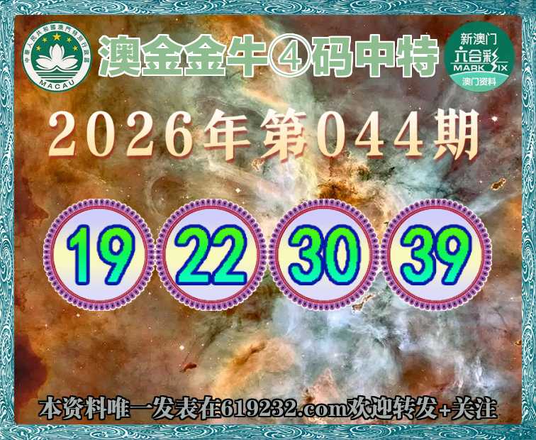 044期:《澳金金牛》 🥬④码中特🥬【19.22.30.39】开:19