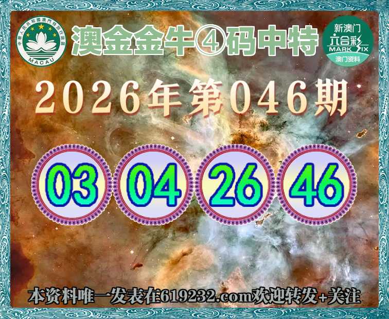 046期:《澳金金牛》 🥬④码中特🥬【03.04.26.46】开:03