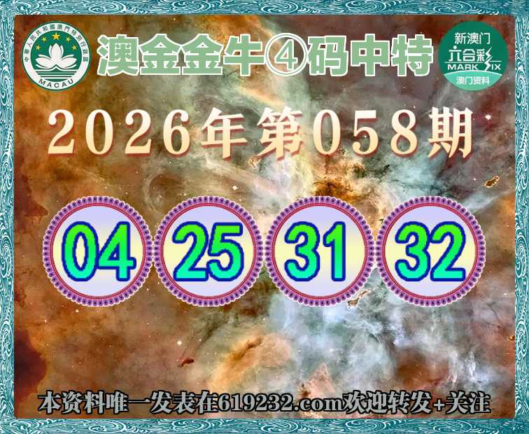 058期:《澳金金牛》 🥬④码中特🥬【04.25.31.32】开:31