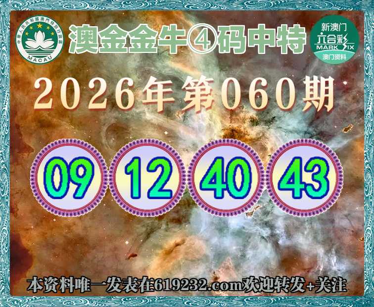 060期:《澳金金牛》 🥬④码中特🥬【09.12.40.43】开:09