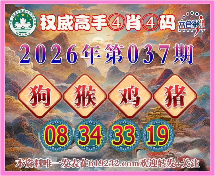 037期:〖权威高手〗 👩‍🌾④肖④码👩‍🌾【狗猴鸡】【08.34.33.19】开:猪43