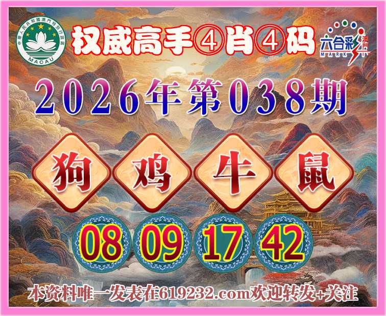 038期:〖权威高手〗 👩‍🌾④肖④码👩‍🌾【狗鸡牛】【08.09.17.42】开:鼠42