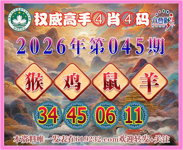 045期:〖权威高手〗 👩‍🌾④肖④码👩‍🌾【猴鸡鼠羊】【34.45.06.11】开:蛇01