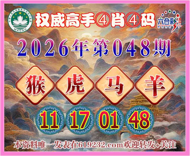 048期:〖权威高手〗 👩‍🌾④肖④码👩‍🌾【猴虎马】【11.17.01.48】开:羊24准上榜高手