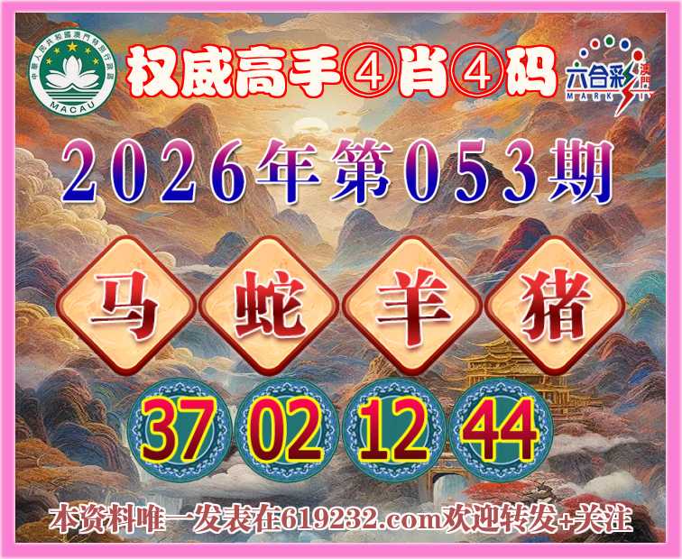 053期:〖权威高手〗 👩‍🌾④肖④码👩‍🌾【马蛇羊猪】【37.02.12.44】开:龙15