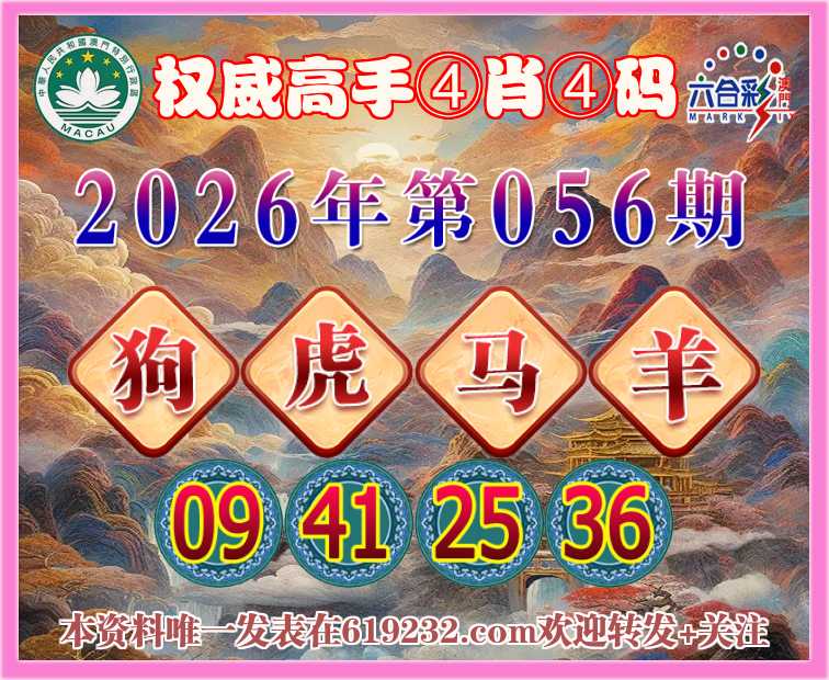 056期:〖权威高手〗 👩‍🌾④肖④码👩‍🌾【狗虎马】【09.41.25.36】开:羊48准上榜高手