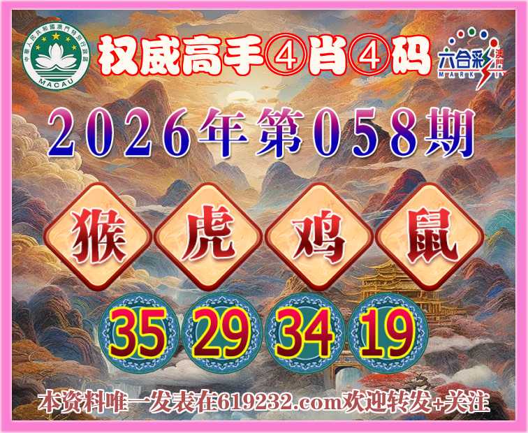 058期:〖权威高手〗 👩‍🌾④肖④码👩‍🌾【猴虎鸡】【35.29.34.19】开:鼠31准上榜高手