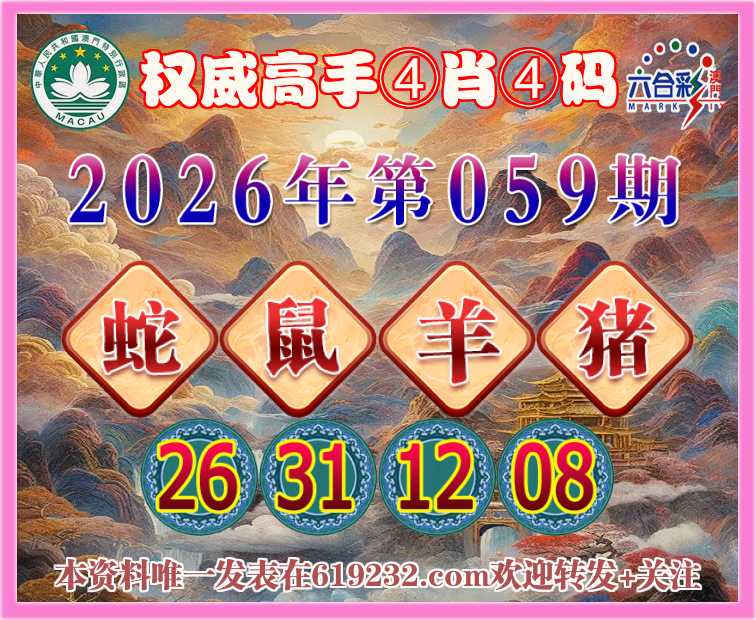 059期:〖权威高手〗 👩‍🌾④肖④码👩‍🌾【蛇鼠羊猪】【26.31.12.08】开:鸡10