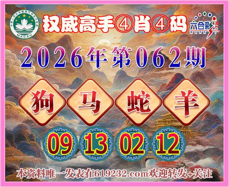 062期:〖权威高手〗 👩‍🌾④肖④码👩‍🌾【狗马蛇羊】【09.13.02.12】开:00准